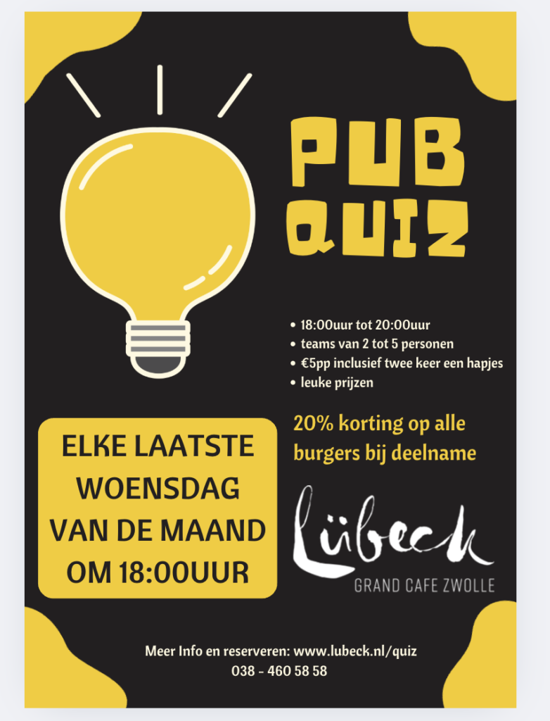 Reserveren via 038 460 58 58, via de mail reserveren@lubeck.nl of via onderstaande formulier